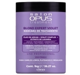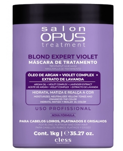 A Máscara de Tratamento Salon Opus Blond Expert Violet trata, hidrata, repara, define e flexibiliza os fios. Auxilia na eliminação do indesejado tom amarelado causado por oxidação natural, promovendo brilho prateado especial aos cabelos loiros (descoloridos ou com mechas), brancos ou grisalhos. Sua fórmula nutritiva com propriedades antioxidantes aliadas ao pigmento violeta, além da ação antienvelhecimento, auxilia na neutralização do tom amarelado, hidrata os fios deixando-os mais macios e brilhantes. Além de tratados, condicionados e totalmente reparados, seus cabelos ficam mais leves, brilhantes e saudáveis.