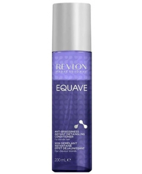O Revlon Equave Anti-Brassiness Instant Detangling é um condicionador spray desenvolvido especialmente para cabelos loiros, grisalhos e descoloridos. Sua fórmula leve e sem enxágue atua instantaneamente, neutralizando tons amarelados indesejados, ao mesmo tempo que desembaraça os fios com facilidade. Enriquecido com queratina, ele fortalece e repara os cabelos danificados, proporcionando brilho, suavidade e maciez. Ideal para quem busca neutralizar o amarelado dos fios enquanto garante um cuidado profundo e proteção para os cabelos loiros.