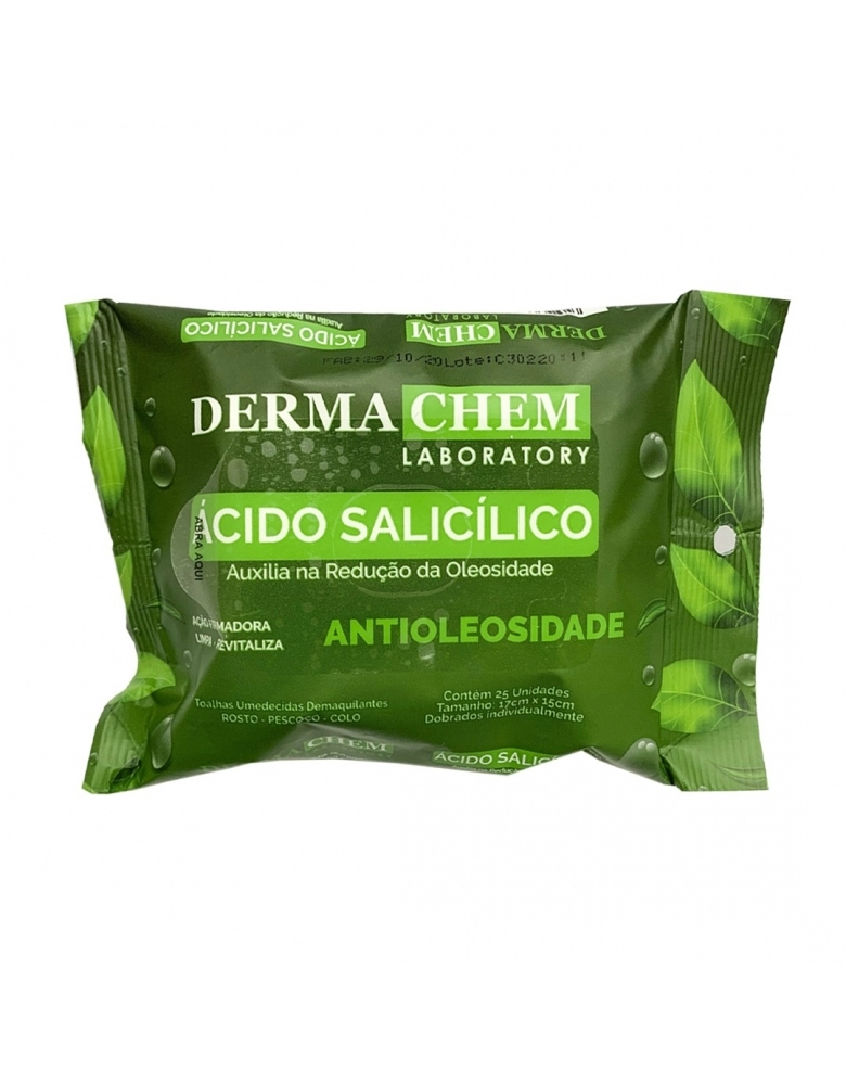 DERMOCOSMETICOS>LENÇO>DEMAQUILANTE>DERMACHEM LENÇO DEMAQUILANTE ACIDO SALICILICO C/ 25 UNID