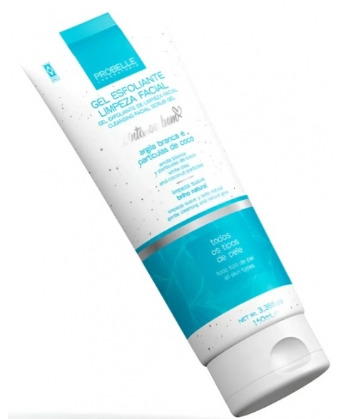 DERMOCOSMETICOS>PROBELLE GEL ESFOLIANTE LIMPEZA FACIAL ARGILA BRANCA E PARTIC. COCO 160ML