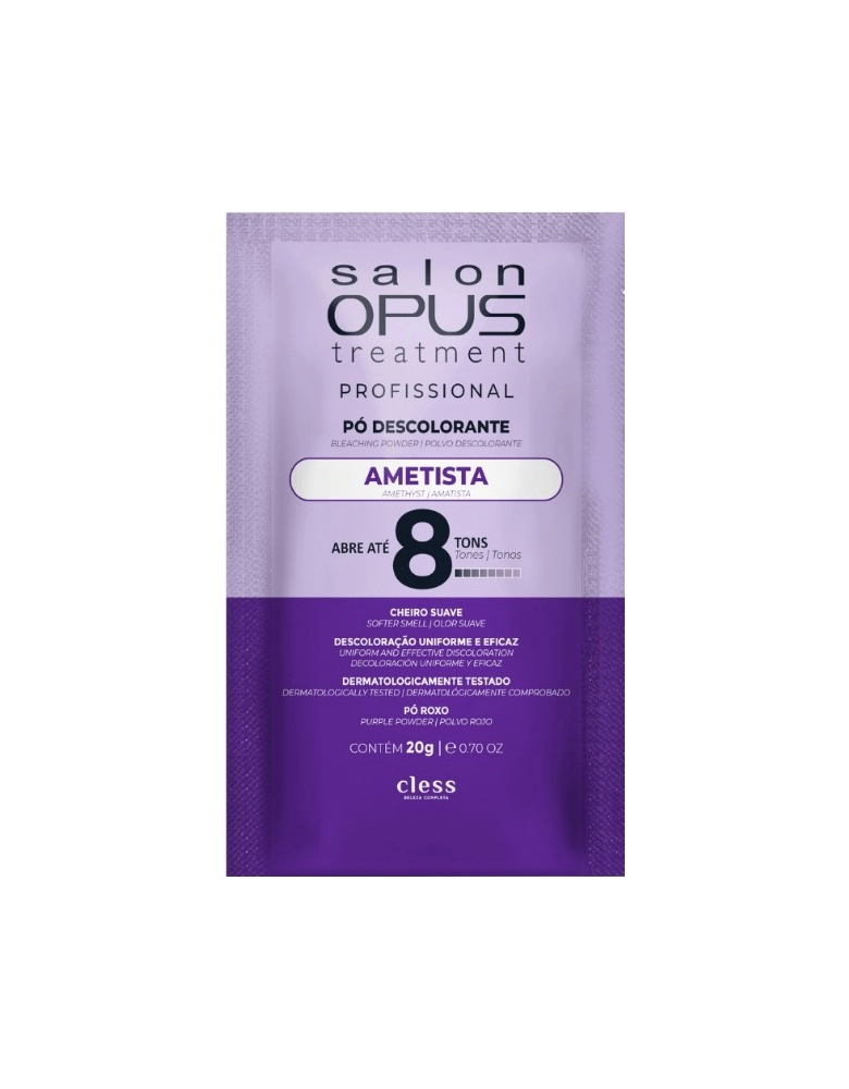NOVA FÓRMULA COM ÁCIDO HIALURÔNICO Care Liss Pó Descolorante Ametista contribui para a neutralização de tons amarelados, abertura de até 8 tons* proporcionando clareamento uniforme. Sua fórmula contém Ácido Hialurônico que auxilia a manter a integridade da fibra capilar no processo de descoloração, mantendo os cabelos bonitos e saudáveis. *A abertura de tons varia de acordo com a pigmentação natural, estrutura e porosidade dos fios. *Para um resultado eficaz, realize o preparo com Care Liss Água Oxigenada 20, 30 ou 40 volumes. CONTRIBUI PARA NEUTRALIZAÇÃO DE TONS AMARELADOS DESCOLORAÇÃO UNIFORME E EFICAZ DERMATOLOGICAMENTE TESTADO PÓ ROXO INGREDIENTES: SODIUM SILICATE/SILICATO DE SÓDIO, TALC/TALCO, AMMONIUM PERSULFATE/PERSULFATO DE AMÔNIO, POTASSIUM PERSULFATE/PERSULFATO DE POTÁSSIO, HYDRATED SILICA/SÍLICA COLOIDAL HIDRATADA, HYDROXYETHYLCELLULOSE/HIETELOSE, XANTHAN GUM /GOMA XANTANA, CI77007/CORANTE AZUL CI77007, DOLOMITE/DOLOMITA, MAGNESIUM CARBONATE/CARBONATO DE MAGNÉSIO, AQUA/ÁGUA, TETRASODIUM EDTA/EDETATO TETRASSÓDICO, AMETHYST POWDER/AMETISTA EM PÓ, SODIUM HYALURONATE/HIALURONATO DE SÓDIO. MODO USO COMO USAR: SIGA RIGOROSAMENTE AS INSTRUÇÕES DE USO E FAÇA O TESTE DE TOQUE E DE MECHA ANTES DE APLICAR O PRODUTO. Despeje o Pó Descolorante Care Liss em um recipiente não metálico e adicione aos poucos a Água Oxigenada Care Liss. Para 1 medida de Pó Descolorante Care Liss, utilize 2 medidas de Água Oxigenada Care Liss. Misture com uma espátula não metálica até formar um creme homogêneo e aplique sobre os cabelos secos. Deixe agir de 10 a 45 minutos no máximo, de acordo com o grau de clareamento desejado, estrutura, porosidade e cor base do cabelo. Caso necessário, reaplique o produto até obter o grau de clareamento desejado, de acordo com a saúde dos fios. Não se exponha ao sol durante a aplicação. Enxágue com água morna e lave os cabelos com shampoo e condicionador para a remoção total do produto. Recomendações de volumagem: 20 volumes - clareia de 2 a 3 tons. 30 volumes - clareia 3 a 5 tons. 40 volumes - clareia de 6 a 8 tons. PROVA DE TOQUE: Prepare um pouco de produto e aplique no antebraço ou atrás da orelha e deixe agir pelo tempo de ação indicado. Lave o local. Após 24 horas, caso surjam sintomas de enjoos, irritações, ardência ou vermelhidão no local aplicado ou