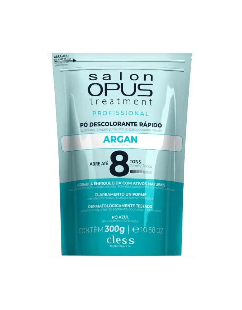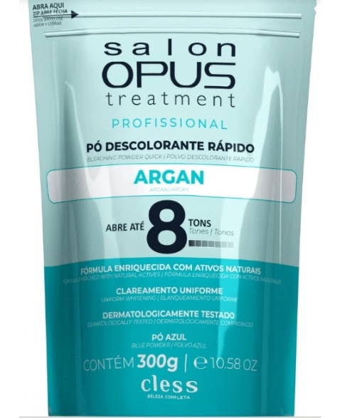 SALON OPUS PROFISSIONAL PÓ DESCOLORANTE ARGAN foi desenvolvido para clarear os cabelos até 8 tons. Sua fórmula enriquecida com Óleo de Argan, auxilia nas propriedades suavizantes e maciez dos cabelos durante o processo de descoloração.