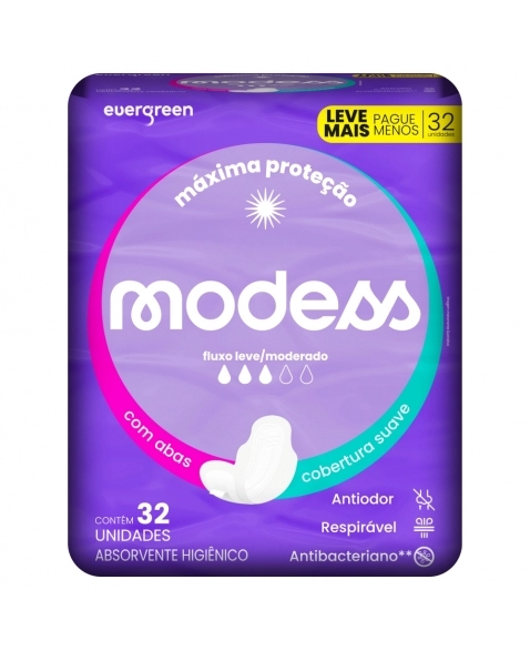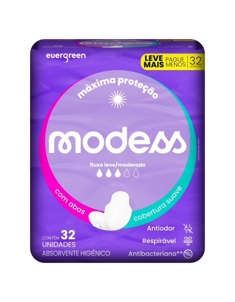 EVERGREEN MODESS ABSORVENTE MALHA SUAVE C/ABAS 32 UNID