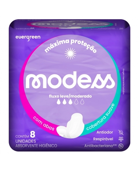 EVERGREEN MODESS ABSORVENTE MALHA SUAVE C/ABAS 8 UNID
