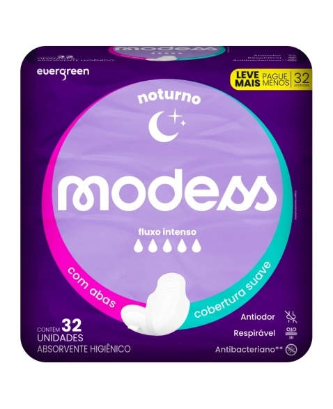 EVERGREEN MODESS ABSORVENTE NOTURNO C/ABAS 32 UNID
