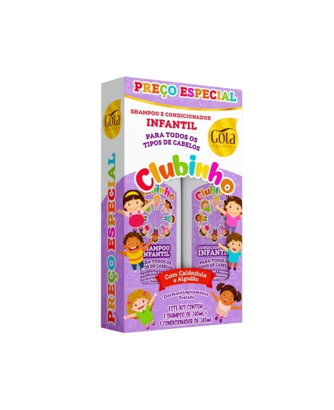 GOTA DOURADA KIT ( SH 340ML + COND 340ML ) INFANTIL CLUBINHO TODOS OS TIPOS