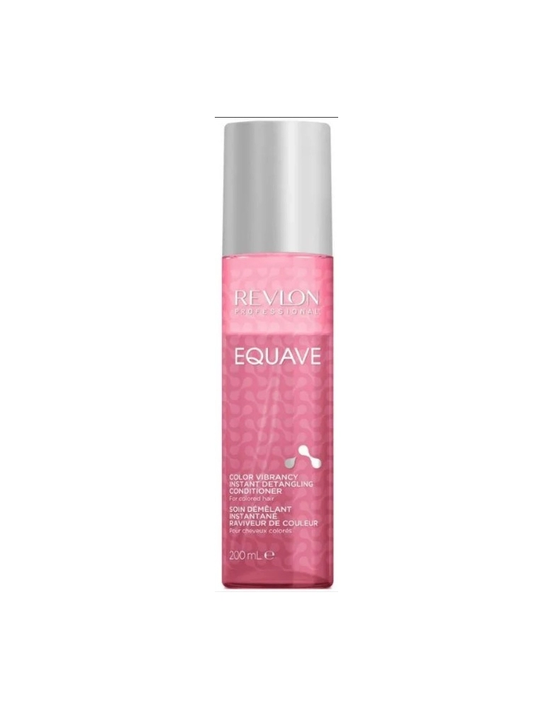 Revlon Professional Equave Color Vibrancy Instant Detangling Conditioner é um condicionador bifásico desembaraçante. Este condicionador não deixa que a cor se desvaneça e mantém o cabelo com um aspeto vibrante durante mais tempo. Enriquecido com ingredientes antioxidantes da cor, e Pro-vitamina B5, este condicionador está desenhado para fixar a cor e hidratar ao mesmo tempo que sela as cutículas. A sua tecnologia Kinetic ativa a fórmula com uma performance profissional de última geração. Antes de cada utilização, basta agitar e fusionar as duas fases do produto para ativar a energia cinética que desperta todo o potencial da fórmula. Esta fusão desbloqueia a potente performance de dupla ação que deixa o cabelo instantaneamente mais desembaraçado, protegido e pronto para a rotina capilar. Principais características: 9 vezes mais fácil de desembaraçar; Efeito antioxidante; Protege a cor contra os agressores externos; Hidrata o cabelo; Contém filtro UV; Revitaliza o cabelo apagado e com coloração; Proteção térmica até 220ºC. Modo de usar: Agitar bem o frasco para misturar as duas fases do produto. Aplicar sobre o cabelo limpo e seco com toalha. Não enxaguar.