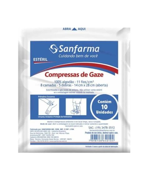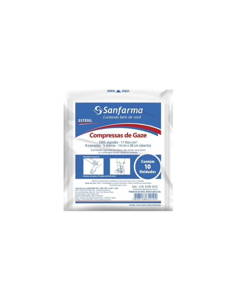 SANFARMA COMPRESSA DE GAZE 11 FIOS/CM² (14X28 CM) C/10 UNID